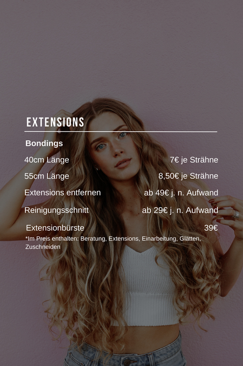 Als Friseurmeisterin, staatl. anerkannte Diplom Kosmetikerin sowie als Spezialistin für Haarverlängerungen (Extensions) biete ich ihnen mit meinem Team Leistungen vom einfachen Schnitt bis hin zum aufwendigen Styling mit Make-up.